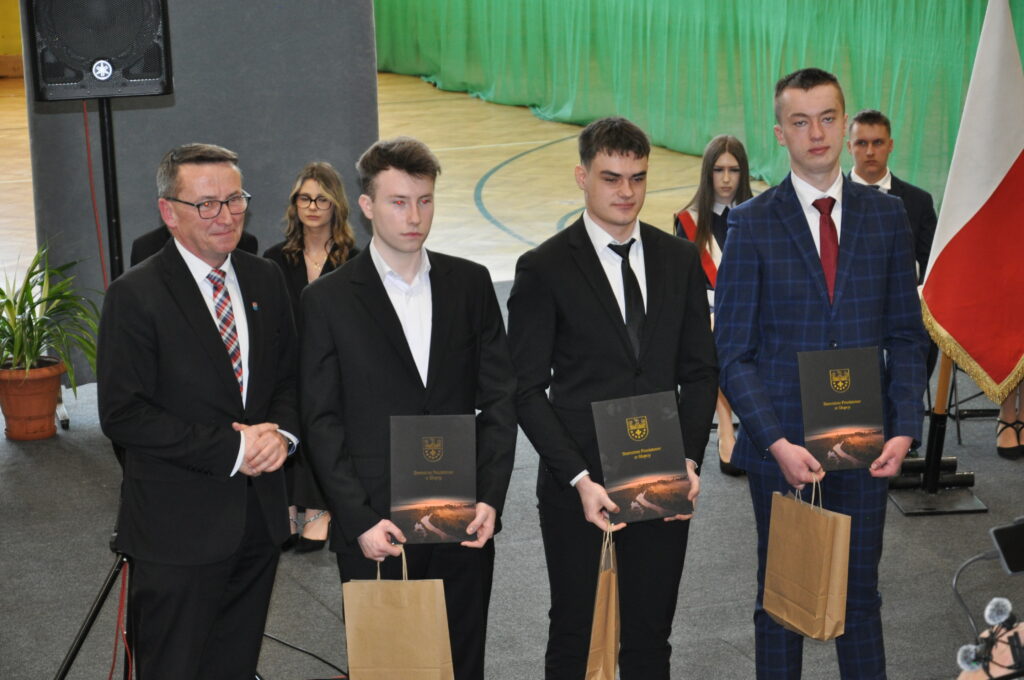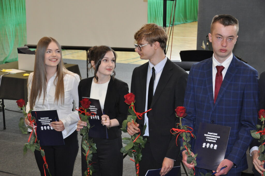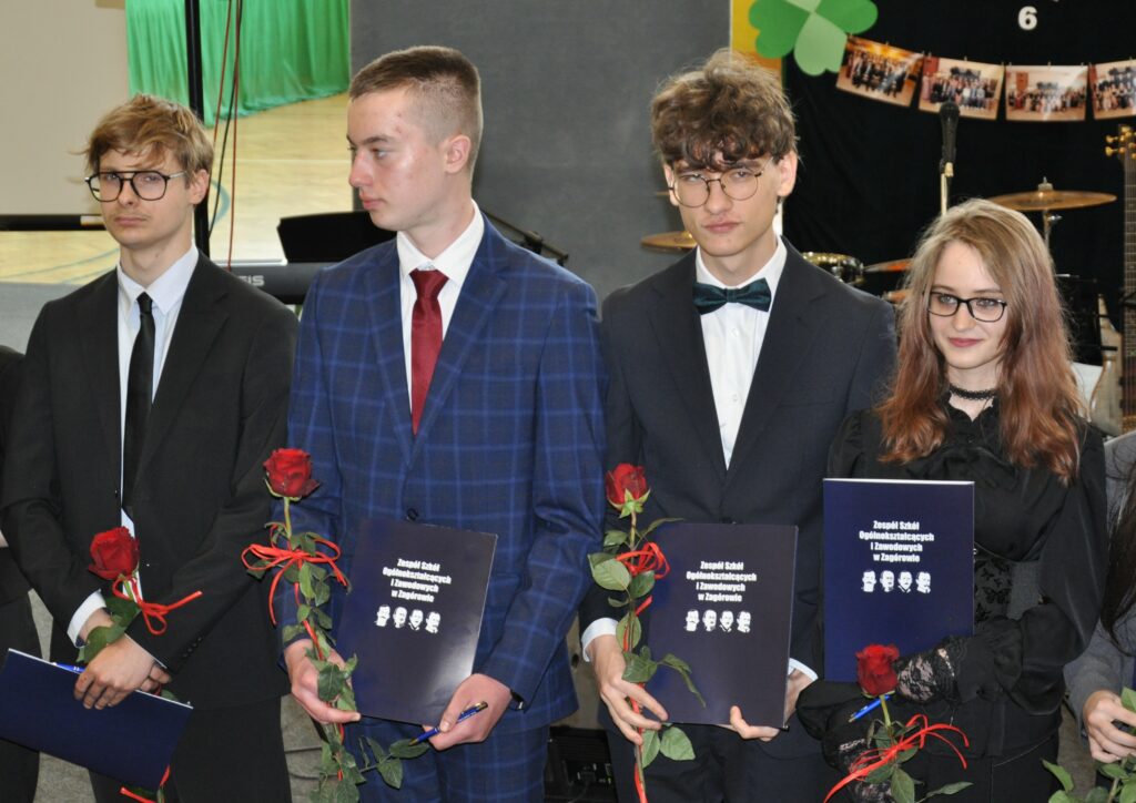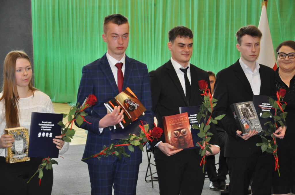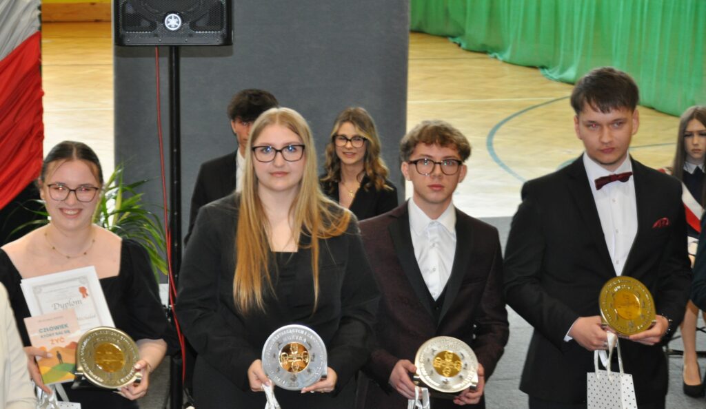 Nagrodzeni zostali również uczniowie, którzy osiągnęli najwyższe wyniki w nauce i zachowaniu. Świadectwo z wyróżnieniem i nagrody otrzymali: Zyta Sikora i Hubert Gorzkowski z klasy 4 Liceum Ogólnokształcącego oraz Hubert Cierzniak i Kacper Walicki z klasy 5 Technikum.