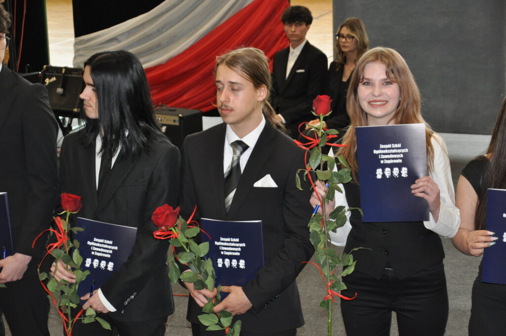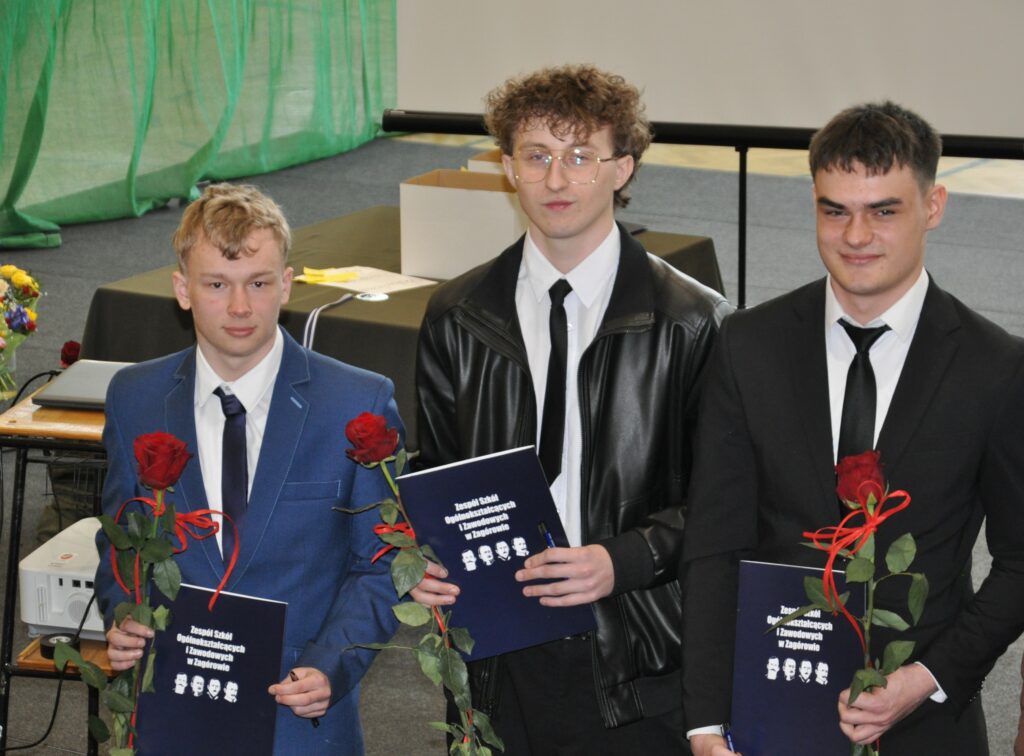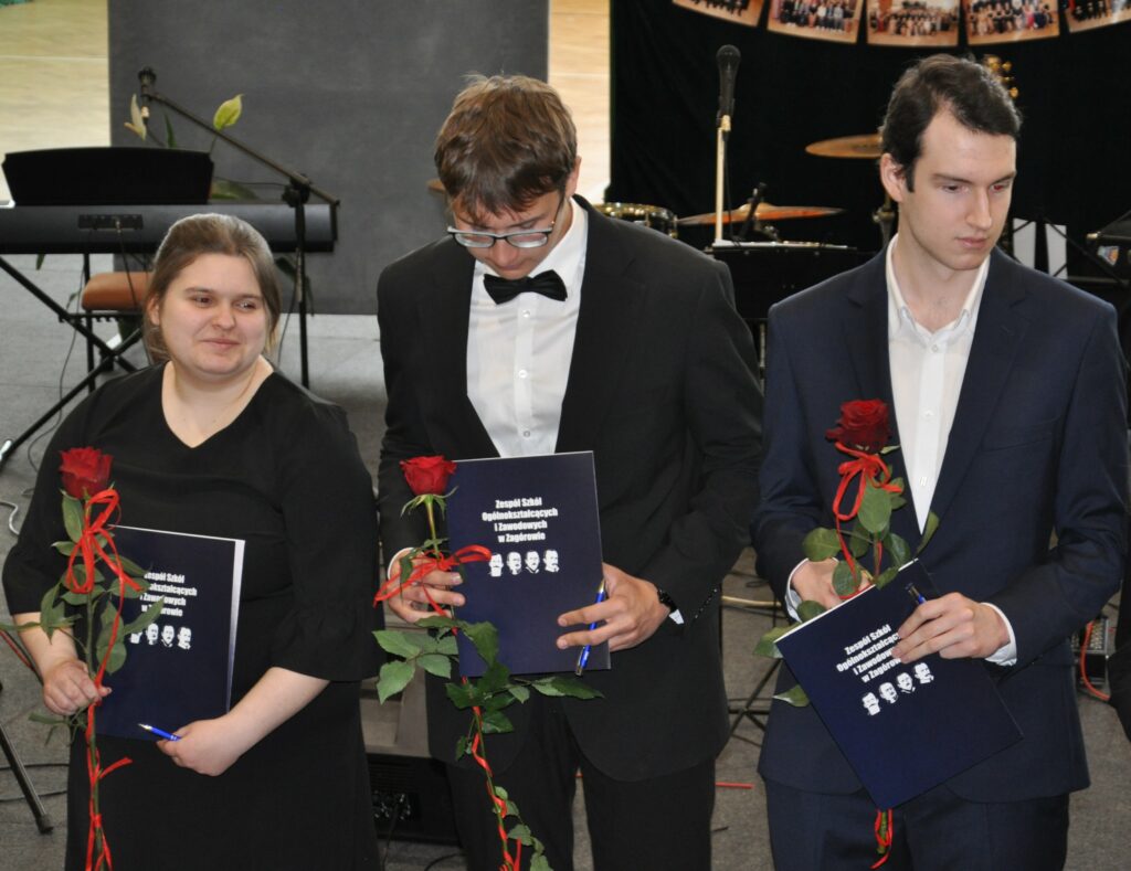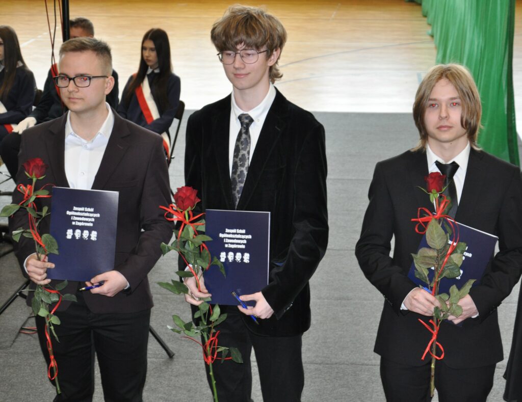 Prowadzący uroczystość uczniowie 3 klasy liceum od lewej: Julia Łyskawińska i Hubert KałmuckiPan Piotr Kowalski – Wicestarosta Powiatu SłupeckiegoZ rąk Pana Piotra Kowalskiego tytuł Absolwenta Roku 2025/2026 otrzymali od prawej: Hubert Gorzkowski, Hubert Cierzniak, Kacper Walicki.Pani Joanna Mięta – Sekretarz Miasta i Gminy Zagórów ksiądz Witold Zieliński – proboszcz Parafii Rzymskokatolickiej pw. św. Apostołów Piotra i Pawła w ZagórowieWiceprzewodnicząca – Pani Kamila KrukowskaOd lewej: Hubert Cierzniak (5T) i Kacper Walicki (5T) oraz Hubert Gorzkowski (4LO) – medal za wyniki w nauce Od prawej: Anna Dębowska (5T) oraz Nadia Woźniak (4LO) i Aleksandra Michalak (4LO) – medal za działalność na rzecz szkołyUczniowie z najwyższymi średnimi od lewej: Zyta Sikora, Hubert Gorzkowski z klasy 4 liceum i Hubert Cierzniak i Kacper Walicki z klasy 5 technikumListy gratulacyjne dla rodzicówListy gratulacyjne dla rodzicówPodziękowania dla rodzicówAbsolwenci otrzymali nagrody i dyplomy za działalność na rzecz szkołyAbsolwenci otrzymali nagrody i dyplomy za działalność na rzecz szkołyAbsolwenci otrzymali nagrody i dyplomy za działalność na rzecz szkołyAbsolwenci otrzymali nagrody i dyplomy za działalność na rzecz szkołyAbsolwenci Liceum Ogólnokształcącego odbierający świadectwaAbsolwenci Liceum Ogólnokształcącego odbierający świadectwaAbsolwenci Liceum Ogólnokształcącego odbierający świadectwaAbsolwenci Liceum Ogólnokształcącego odbierający świadectwaAbsolwenci Liceum Ogólnokształcącego odbierający świadectwaAbsolwenci Liceum Ogólnokształcącego odbierający świadectwaAbsolwenci Liceum Ogólnokształcącego odbierający świadectwaAbsolwenci Liceum Ogólnokształcącego odbierający świadectwaAbsolwenci Liceum Ogólnokształcącego odbierający świadectwaAbsolwenci Technikum odbierający świadectwaAbsolwenci Technikum odbierający świadectwaAbsolwenci Technikum odbierający świadectwaAbsolwenci Technikum odbierający świadectwaAbsolwenci Technikum odbierający świadectwaAbsolwenci Technikum odbierający świadectwaAbsolwenci Technikum odbierający świadectwaAbsolwenci Technikum odbierający świadectwaAbsolwenci Technikum odbierający świadectwaAbsolwenci Technikum odbierający świadectwaAbsolwenci Technikum odbierający świadectwaZaproszeni goście, nauczyciele, rodzice i absolwenci ZSOiZ w ZagórowieW imieniu absolwentów przemówili od lewej Jakub Juszczak 5T i Nadia Woźniak 4LOW imieniu wychowawców przemówiła pani Małgorzata Zielińska-WojtczakWystęp zespołu Kostanecki BandWystęp zespołu Kostanecki BandPrzemówienie reprezentanta Szkolnego Samorządu Uczniowskiego Filipa AndrzejakaŚlubowanie absolwentów ZSOiZ w ZagórowieAbsolwenci LO wraz z wychowawczyniąAbsolwenci 5T wraz z wychowawczynią